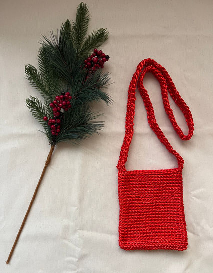 Bolso hecho a mano en cinta satinada de poliester muy resistente con cierre metálico en su interior y asa larga lo que te permite llevarlo al hombro o cruzarlo. Su pequeño tamaño hace que sea perfecto para llevar protegido tu smartphone.